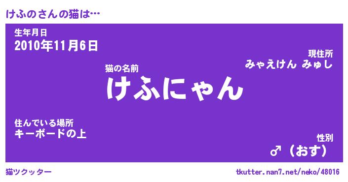 | ポケモン風あだ名 | 『ケフチュウ』『ケフノダネ』 |