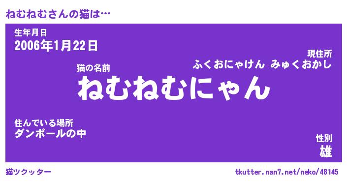 | 意味不明あだ名 | 『ペロリンねむねむ』『永久保存ねむねむ』 |