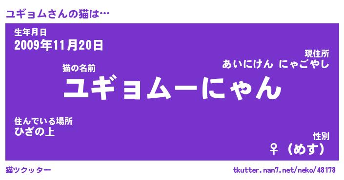 | ポケモン風あだ名 | 『ユギチュウ』『ユギョダネ』 |