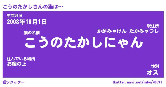 | 肩書あだ名 | 『こうのたかし御曹司』 |