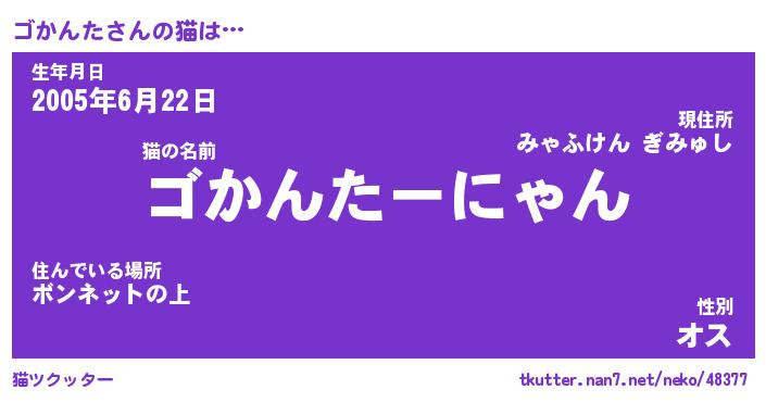 | 自動車の名前っぽいあだ名 | 『ゴカティマ』『ゴクア』『ゴント』 |