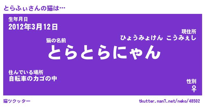 | 肩書あだ名 | 『とらふぃ御曹司』『とらふぃ総理大臣』 |