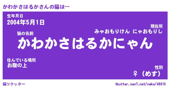 | 恥ずかしいあだ名 | 『プリティーかわかさはるか』『かわちん』 |