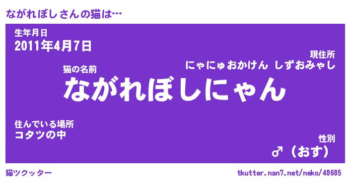 | 男性向けラノベタイトル風あだ名 | 『ながれぼしの憂鬱』 |