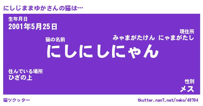 | 2回繰り返すあだ名 | 『にしにし』『ににしし』『ぬめぬめ』 |