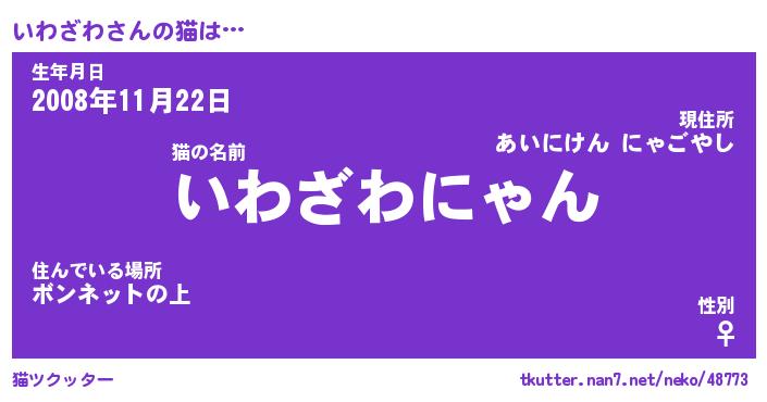 | 意味不明あだ名 | 『ペロリンいわざわ』『永久保存いわざわ』 |