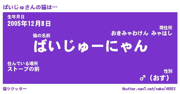 | 意味不明あだ名 | 『ペロリンばいじゅ』『永久保存ばいじゅ』 |