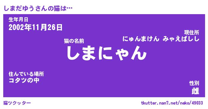 | ファンタジー風あだ名 | 『シマフェル』『エターナルシマダユウー』 |