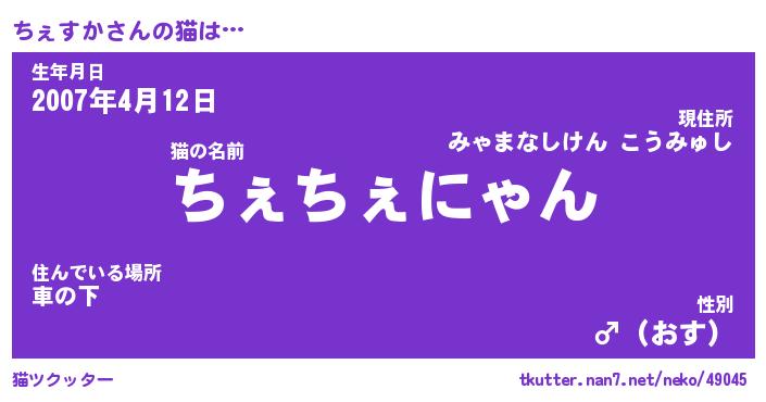 | 2回繰り返すあだ名 | 『ちぇちぇ』『ちちぇぇ』『ぎとぎと』 |