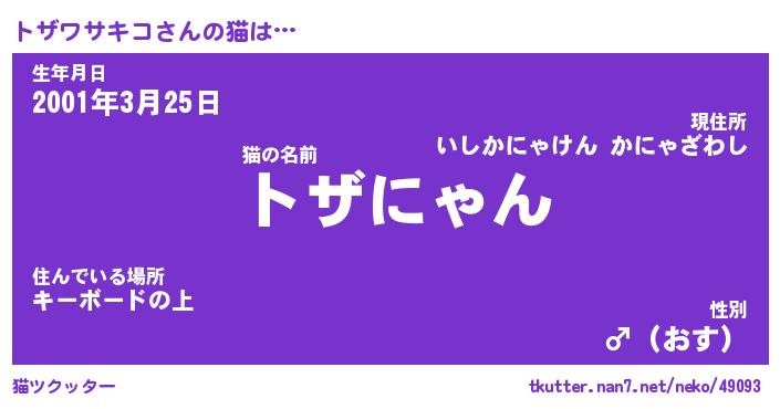 | ポケモン風あだ名 | 『トザチュウ』『トザワダネ』 |