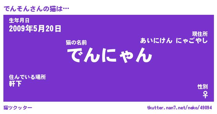 | 男性向けラノベタイトル風あだ名 | 『でんそんの憂鬱』 |
