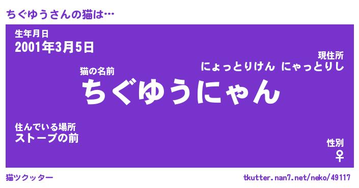 | 意味不明あだ名 | 『ペロリンちぐゆう』『永久保存ちぐゆう』 |