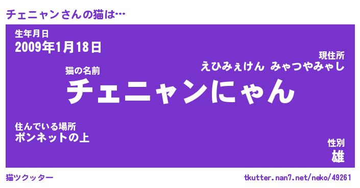 | 男性向けラノベタイトル風あだ名 | 『チェニャンの憂鬱』 |