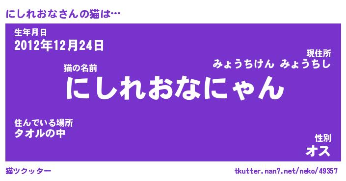 | ポケモン風あだ名 | 『ニシチュウ』『ニシレダネ』 |