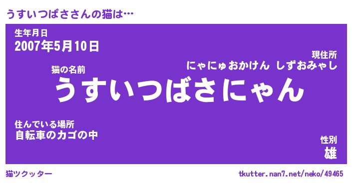 | 男性向けラノベタイトル風あだ名 | 『うすいつばさの憂鬱』 |