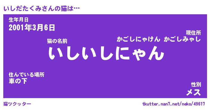 | ヘコむあだ名 | 『いしにゅー』『つくし』『いしお』 |