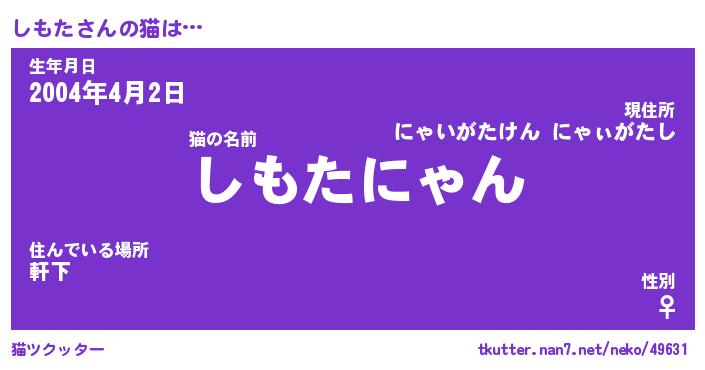 | ポケモン風あだ名 | 『シモチュウ』『シモタダネ』 |