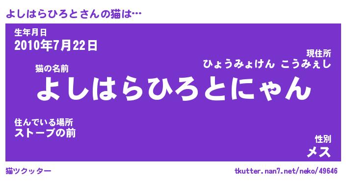 | 男性向けラノベタイトル風あだ名 | 『よしはらひろとの憂鬱』 |