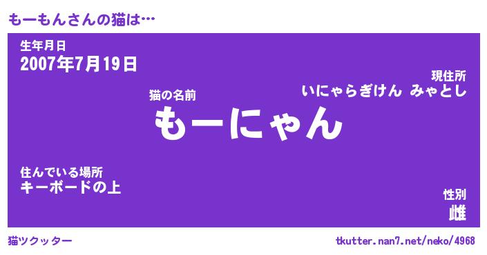 | 意味不明あだ名 | 『ペロリンもーもん』『永久保存もーもん』 |