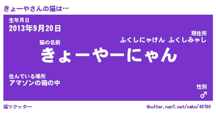 | 意味不明あだ名 | 『ペロリンきょーや』『永久保存きょーや』 |
