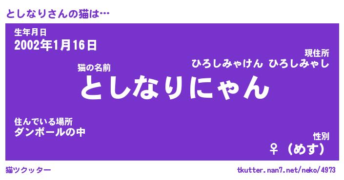 | 生年月日? …「くろねこ」 | 8月01日 10:16 |