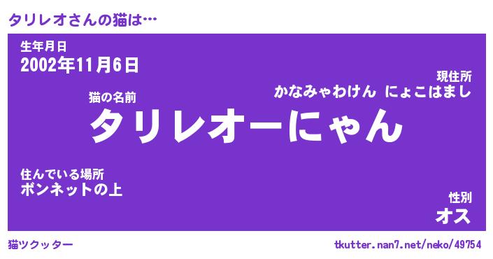 | ファンタジー風あだ名 | 『タリフェル』『エターナルタリレオー』 |