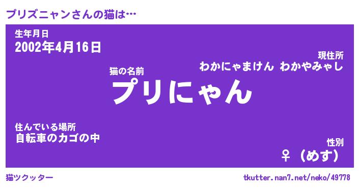 | 意味不明あだ名 | 『ペロリンプリズニャン』 |