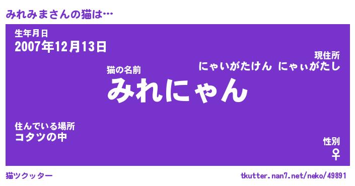 | 男性向けラノベタイトル風あだ名 | 『みれみまの憂鬱』 |
