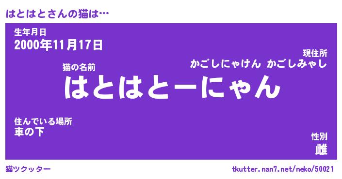 | ファンタジー風あだ名 | 『ハトフェル』『エターナルハトハトー』 |
