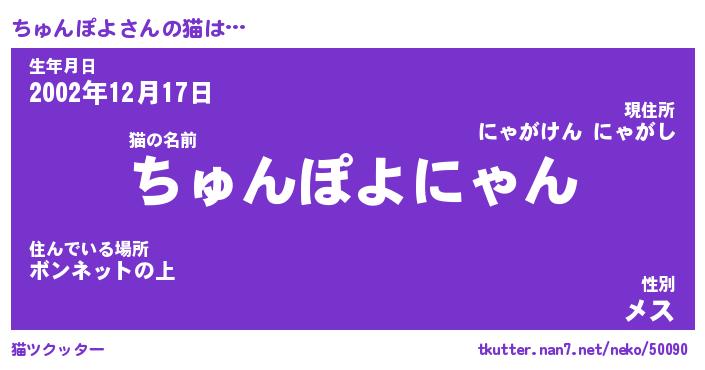 | 男性向けラノベタイトル風あだ名 | 『ちゅんぽよの憂鬱』 |