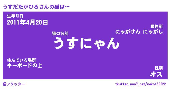| ポケモン風あだ名 | 『ウスチュウ』『ウスダダネ』 |