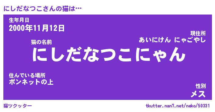 | 肩書あだ名 | 『にしだなつこ店長』『にしだなつこ班長』 |