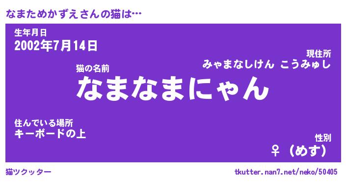 | ポケモン風あだ名 | 『ナマチュウ』『ナマタダネ』 |
