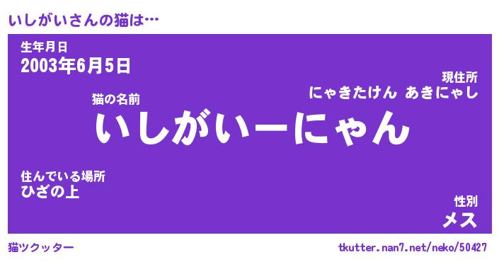 | ヒーロー風カッコイイあだ名 | 『スーパーイシガイ』『暗黒騎士イシ』 |