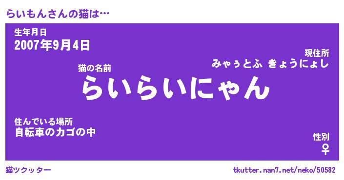 | ヘコむあだ名 | 『らいにー』『豆乳』『らいぷりん』 |