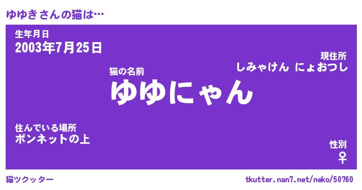 | ファンタジー風あだ名 | 『ユユフェル』『エターナルユユキー』 |