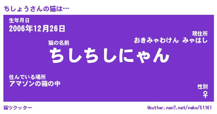 | 意味不明あだ名 | 『ペロリンちしょう』『永久保存ちしょう』 |