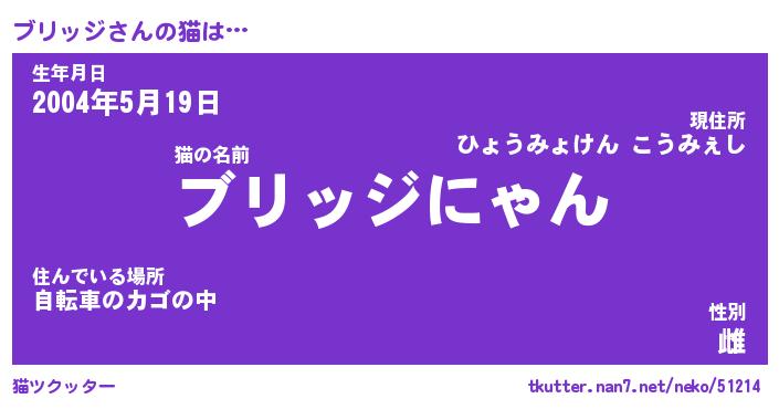 | 意味不明あだ名 | 『ペロリンブリッジ』『永久保存ブリッジ』 |