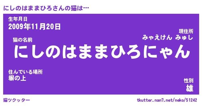 | 男性向けラノベタイトル風あだ名 | 『にしのはままひろの憂鬱』 |