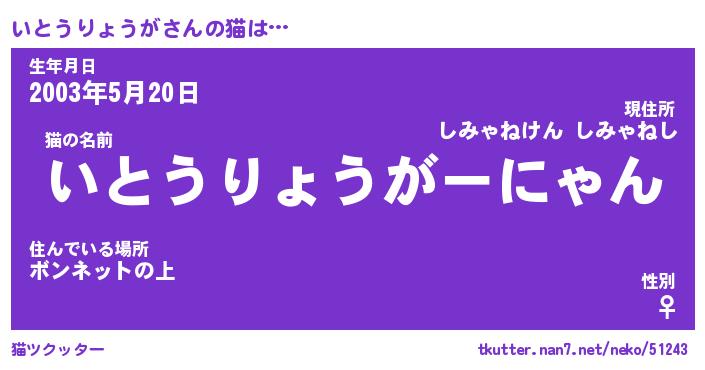 | 生年月日? …「くろねこ」 | 8月01日 10:16 |