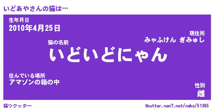 | ツイッター | いどあやさんのツイッターID『dendenmushi_kun』 |