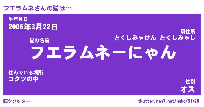 | 意味不明あだ名 | 『ペロリンフエラムネ』 |