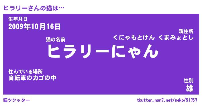 | 意味不明あだ名 | 『ペロリンヒラリー』『永久保存ヒラリー』 |