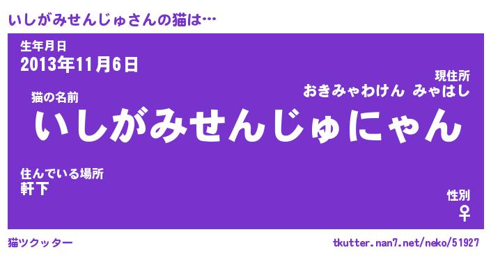 | 男性向けラノベタイトル風あだ名 | 『いしがみせんじゅの憂鬱』 |