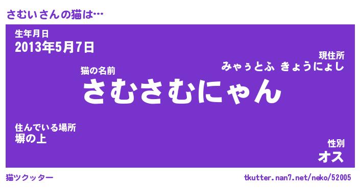 | 2回繰り返すあだ名 | 『さむさむ』『ささむむ』 |