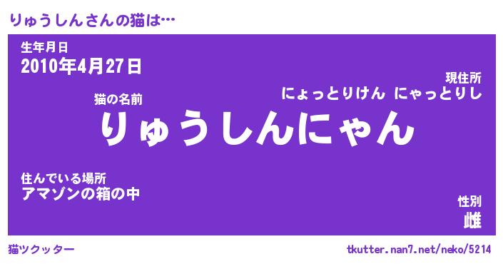 | 男性向けラノベタイトル風あだ名 | 『りゅうしんの憂鬱』 |