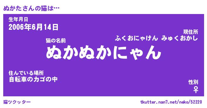 | ポケモン風あだ名 | 『ヌカチュウ』『ヌカタダネ』 |