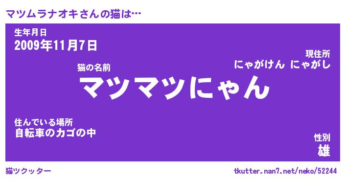 | 2回繰り返すあだ名 | 『マツマツ』『ママツツ』『ぬらぬら』 |