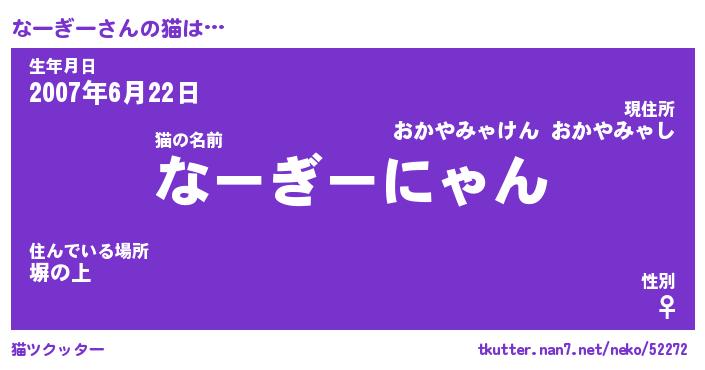 | 男性向けラノベタイトル風あだ名 | 『なーぎーの憂鬱』 |
