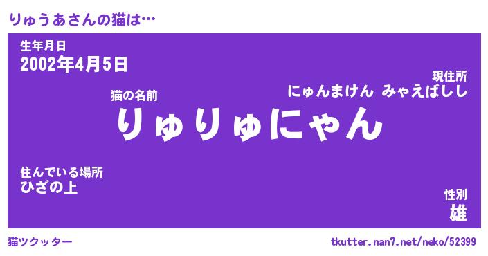 | 2回繰り返すあだ名 | 『りゅりゅ』『りりゅゅ』『ぬれぬれ』 |